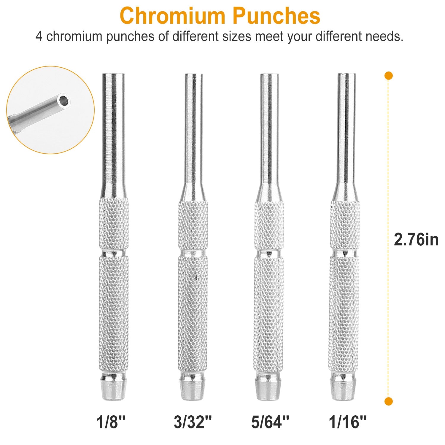 - Hammer & Punch Set: Features brass, nylon plastic, chromium solid punches making it the ideal kit for your workbench: 1/8in, 9/64in, 5/32in, 3/16 in, 7/32 in, 1/4 in, 9/32 in and 5/16 in brass punches, 1/16in, 5/64in, 3/32in, 1/8in chromium punches, 1/16in, 3/32in, 1/16in, 3/32in chromium punch pins, 15/64in, 3/8in nylon plastic punches.