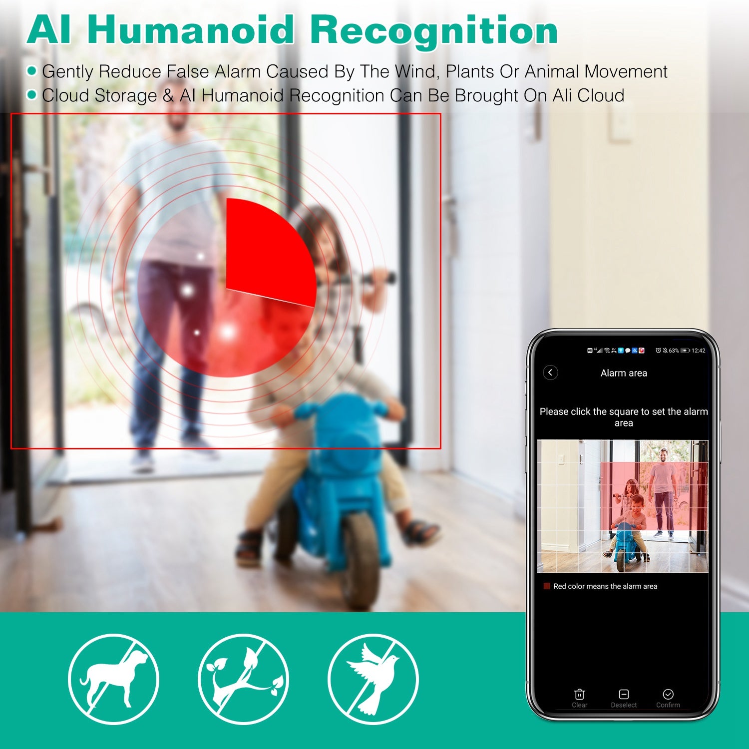 - AI Human Detection: Only alarm when there is human activity, making it more precise! (Reduce the nuisance alarms caused by the wind, glass or animal, AI Human Detection service are provided and charged by third party)