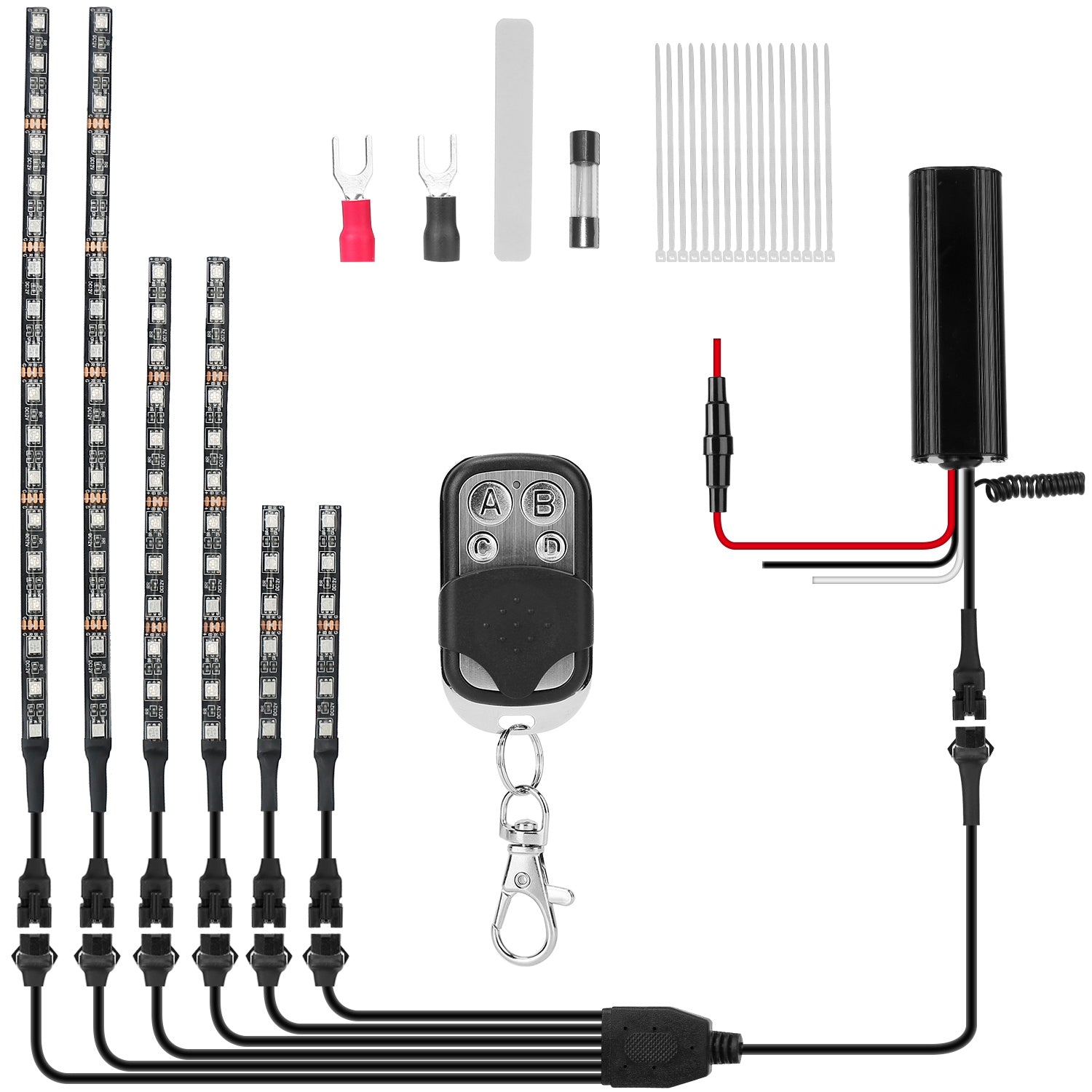 6Pcs Motorcycle LED Light Strips Multi-Color Neon Light Kits Waterproof DC 12V RGB Atmosphere Lights W/ Remote Controller Fit For Motorcycle