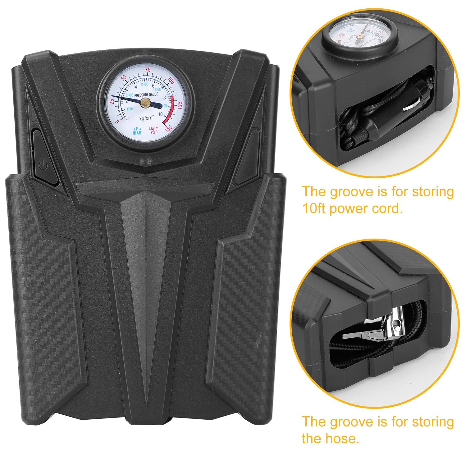 - Room Saving Design: There is a storage groove on the top and bottom of the fuselage, which is customized for the inflation tube and power cord, making it convenient for storage and carry.