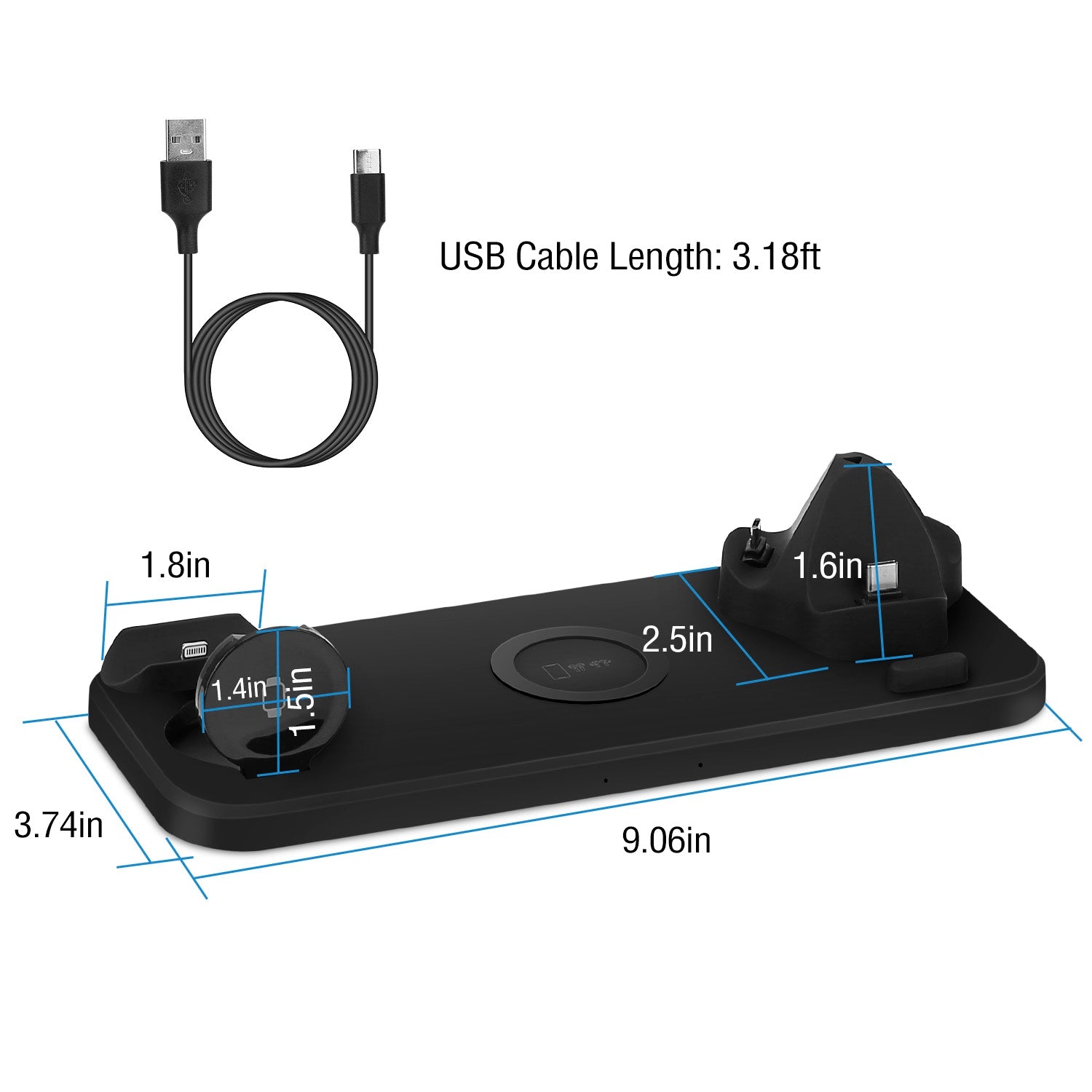 *WIDELY COMPATIBILITY*:No need to connect three cables for each device anymore, use our wireless charging stand to charge for iWatch 1/2/3/4/5 and for Airpods Pro/1/2 and any Qi-certified devices at once! Come with three kinds of ports,it supports any IOS phone/Micro USB phone/Type-C phone. Optimal solution organizes your workspace.