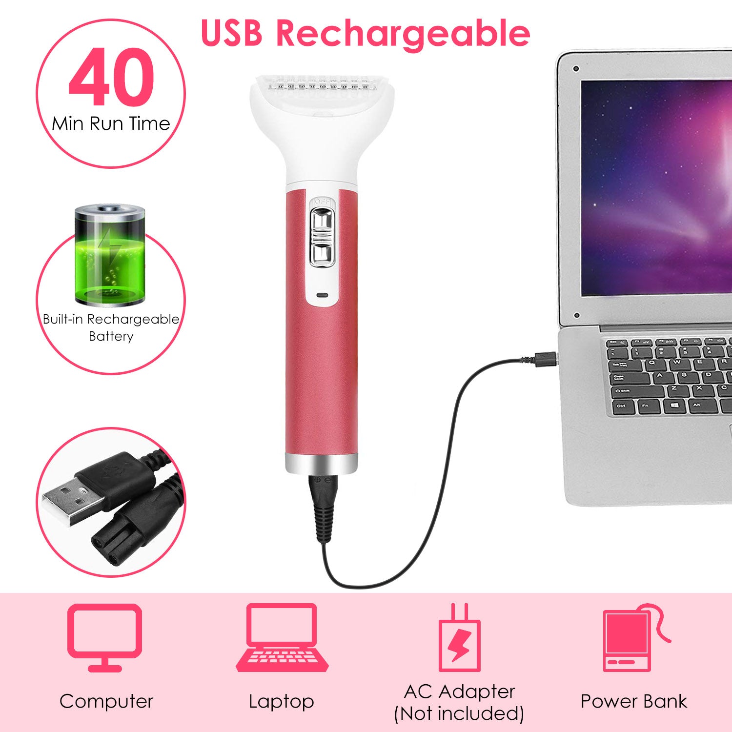 - *5 In 1 Ladies Electric Shaver*:Come with Shaver Main Engine and 5 different trimmer heads for shaving long hairs,short hairs,nose hairs,eyebrow,and facial hairs,our 5 in 1 ladies electric shaver is able to meet your various need.