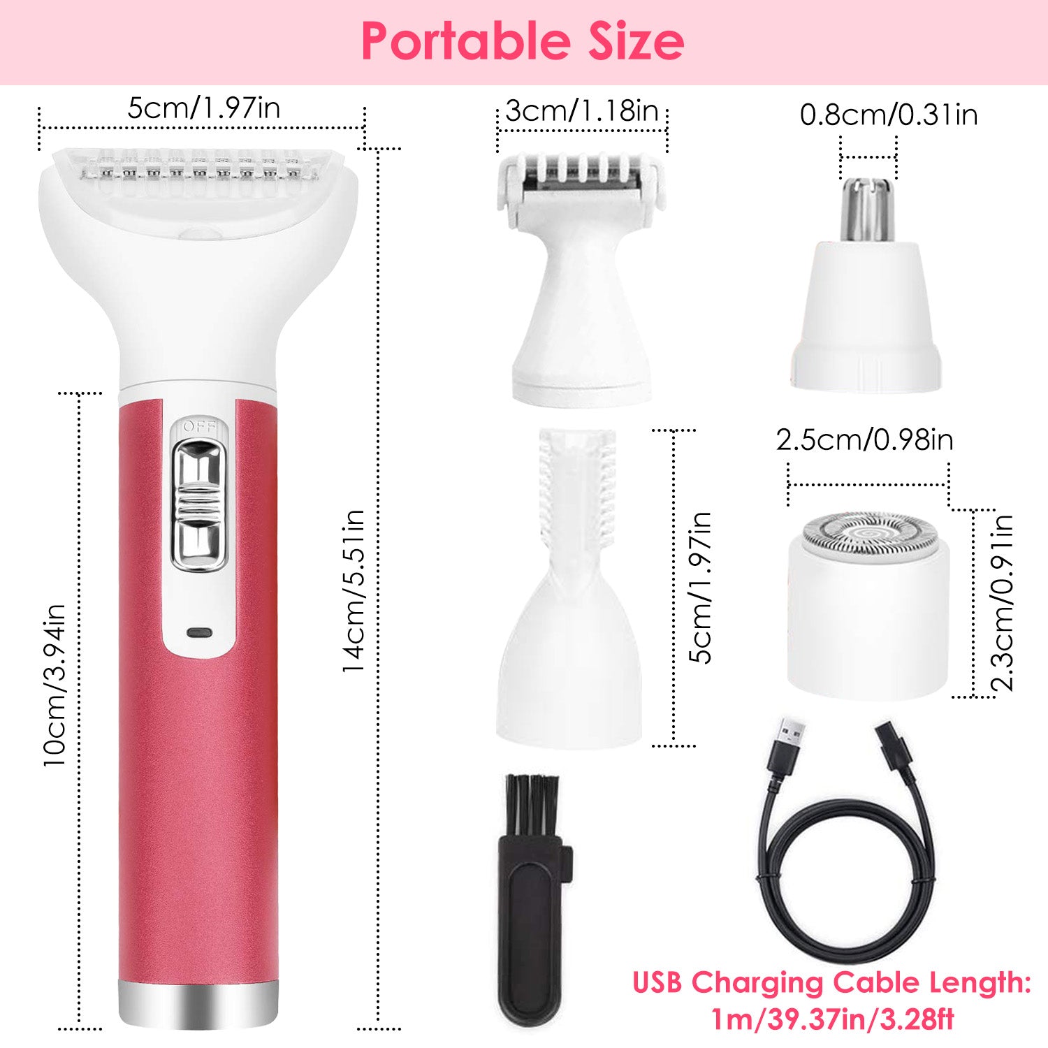 5 In 1 Lady Electric Razor Painless Hair Removal Eyebrow Nose Cordless Shaver Set