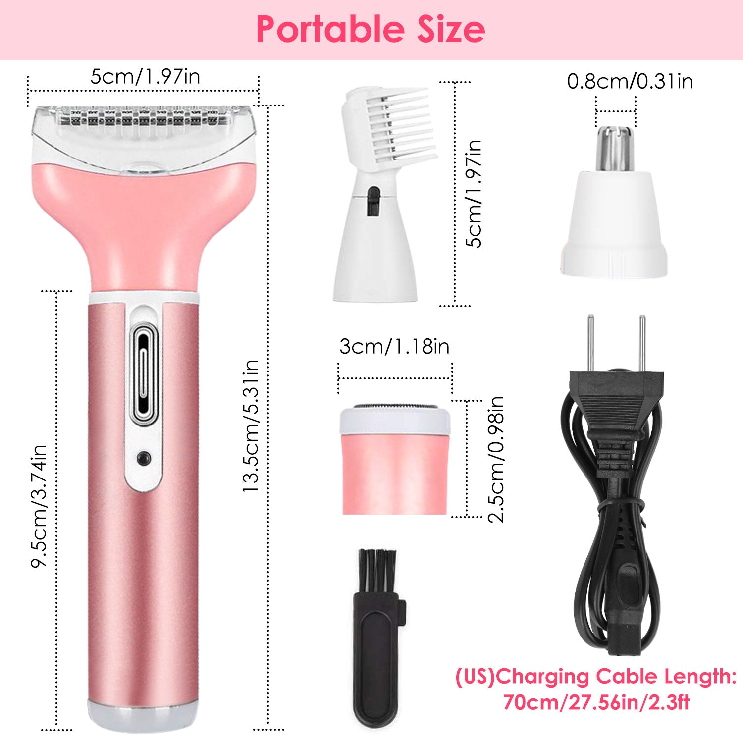 4 In 1 Women Electric Shaver Painless Rechargeable Hair Remover Eyebrow Nose Hair Cordless Trimmer Set
