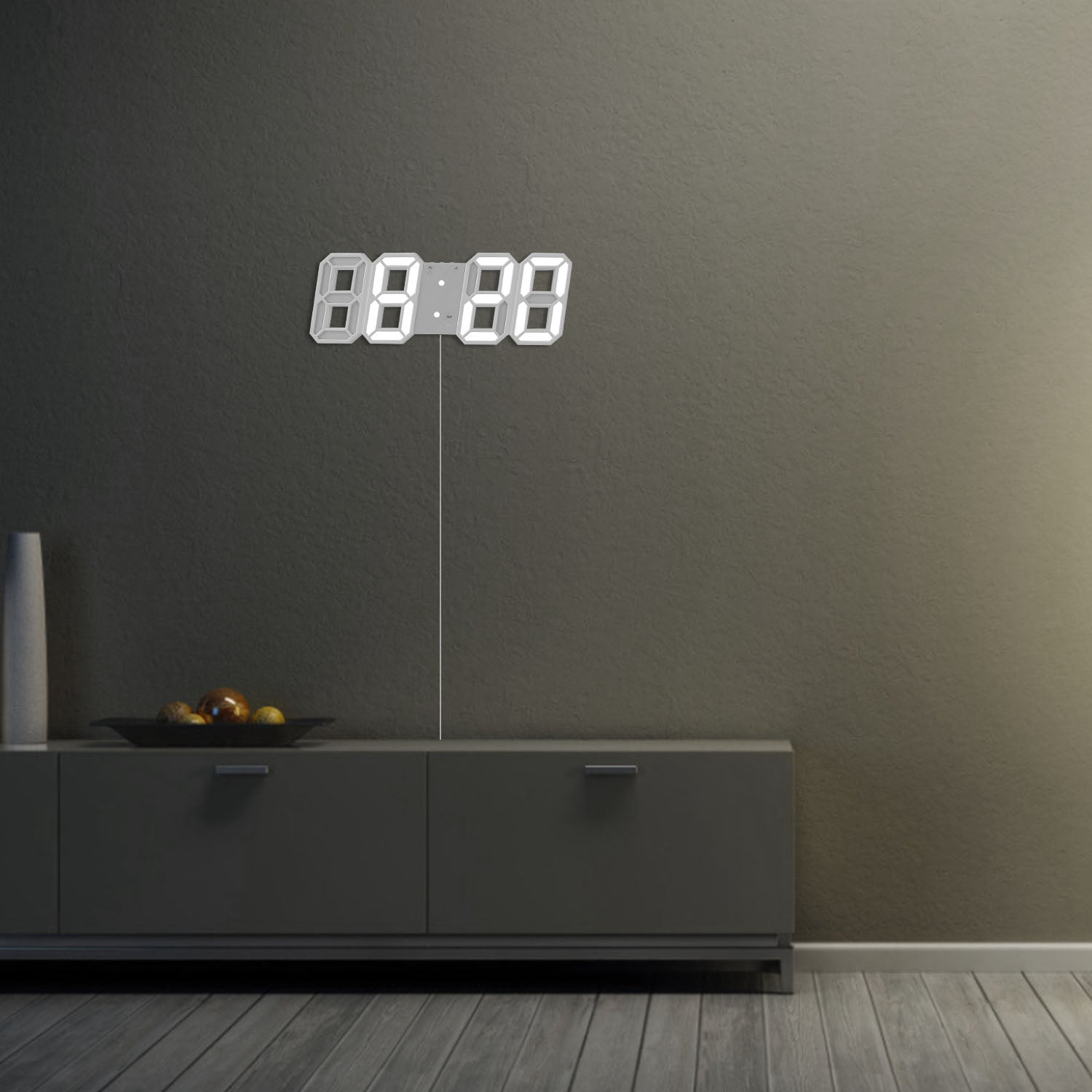 3D LED Digital Wall Clock Sound Control Alarm Clock w/ 3 Auto Adjustable Brightness Snooze Date Temperature 12/24Hr Time Display