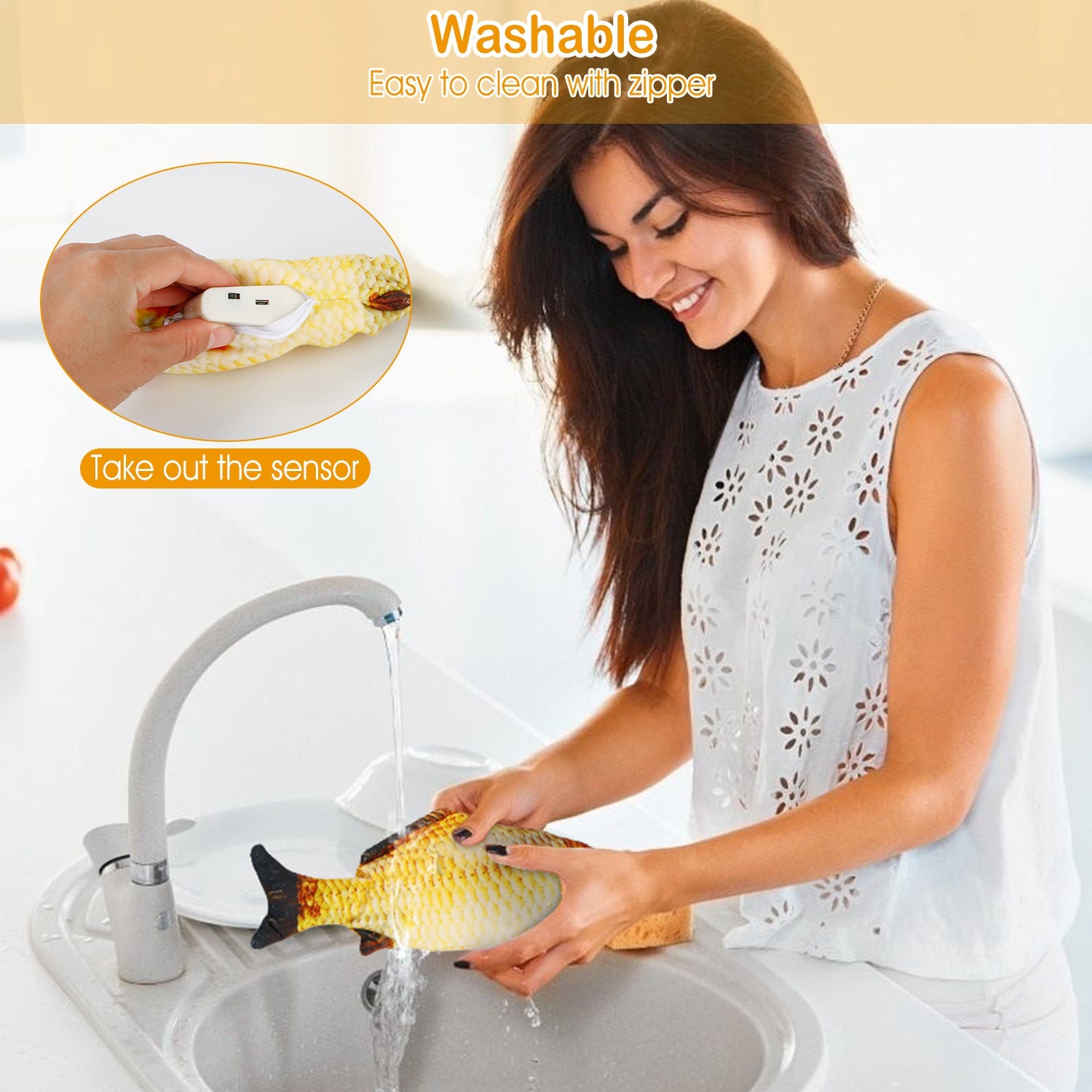 - ** Electric Moving Interactive Cat Toys*:Built-in touch sensor, whenever the cat touches this motion kitten toys,the fish toy can swing in three wagging modes and making a sound. Filled with catnip, the plush interactive cat toys have a aromatic fragrance which can relieve your kitty’s stress and depression.