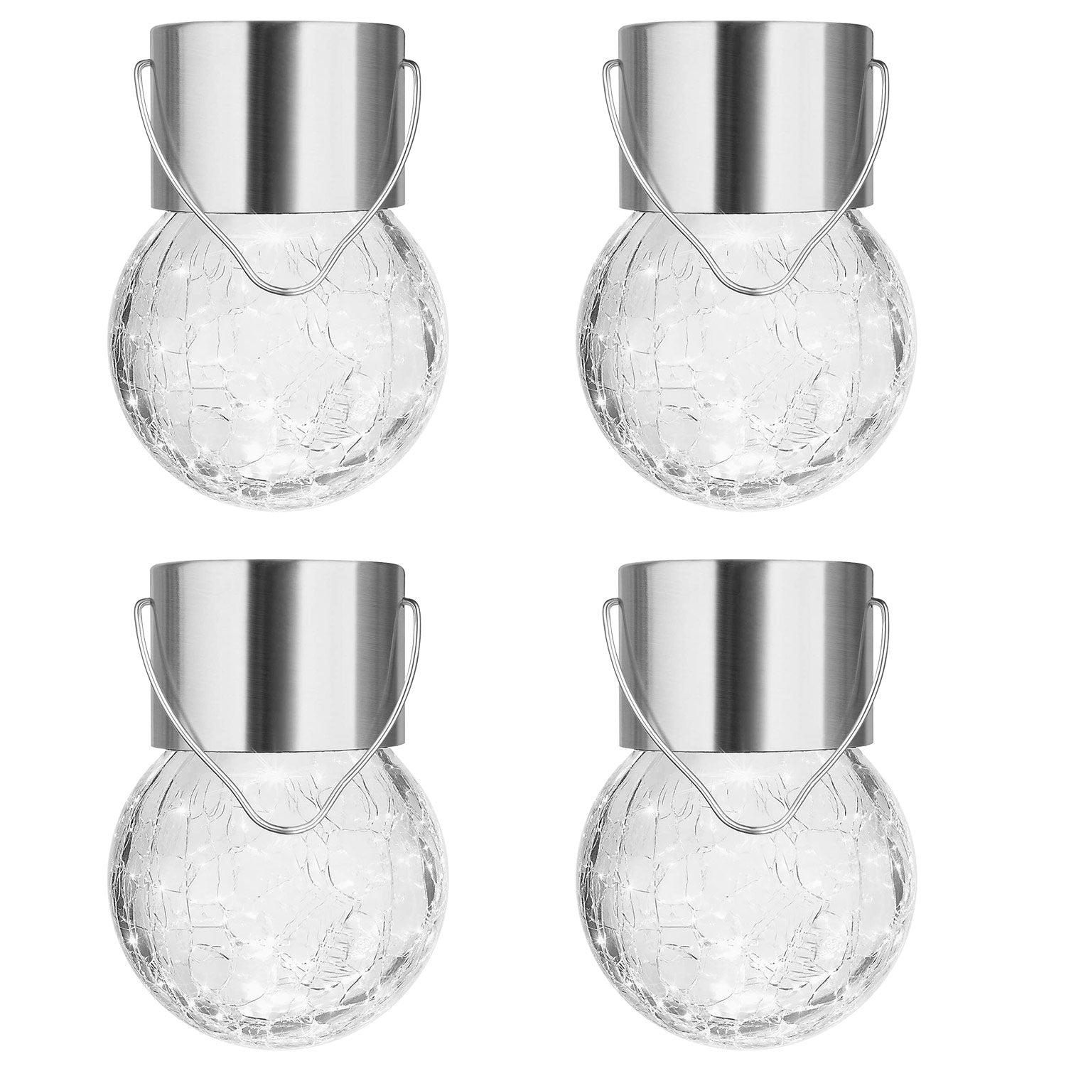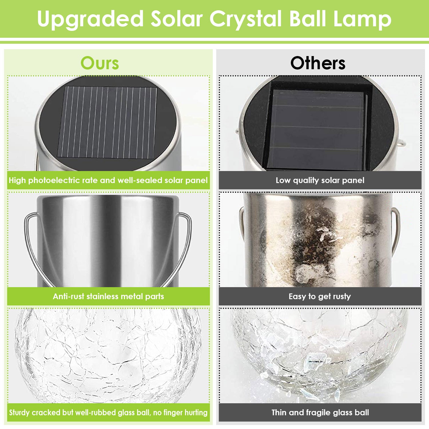 - **Decorative Crackle Glass Ball*:With an eye-catching crackled glass ball cover, outdoor solar hanging lights will emit amazing glow and delivery comfortable light to your house, make your house romantic and wonderful.