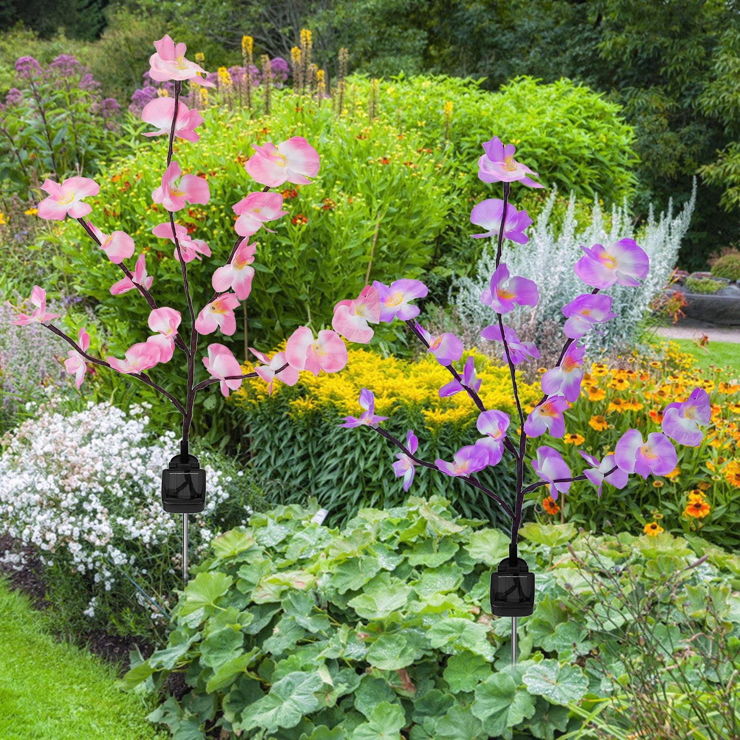 2Pcs Solar Powered Garden Light Orchid Flower Stake Lamps Waterproof LED Lawn Lights