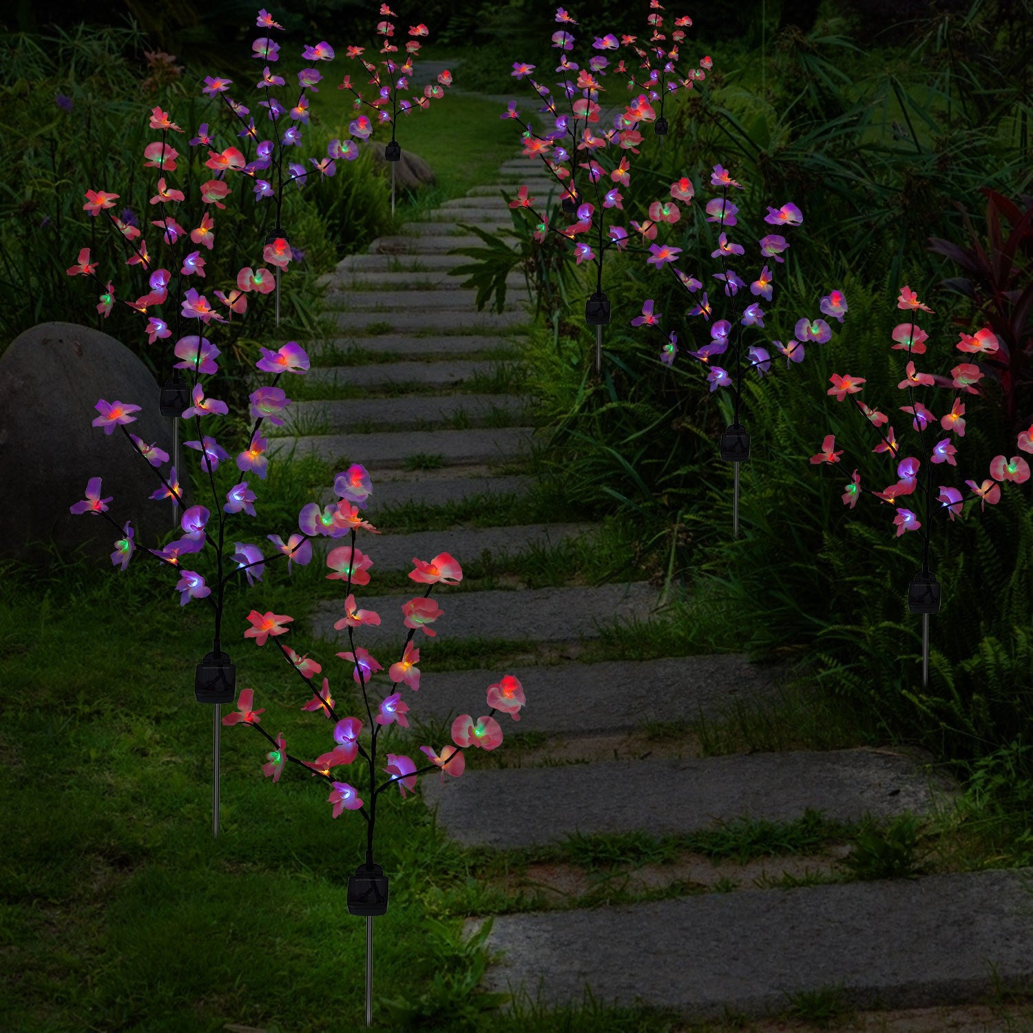 - **LED Color-Changing Landscape Light*:The lifelike orchid flowers add a natural and relaxing atmosphere to your garden. With 4 colors lighting colors and 8 lighting modes, this flower landscape light can be even more gorgeous at night.