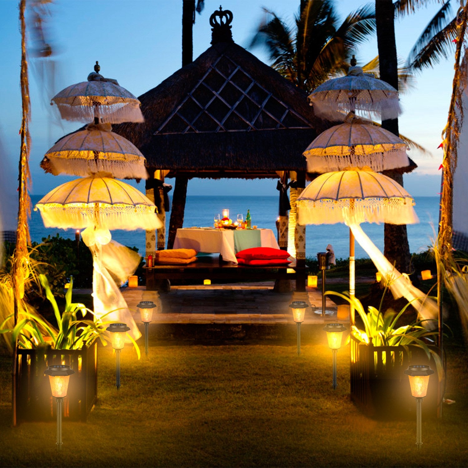 - *GORGEOUS DANCING FLAMES DESIGN*:Built-in 12Pcs LED beads per light illuminate and cast a soft realistic flickering flame light that gives an exotic tropic feel to your yard, garden, lawn, patio, pathway, etc.. Add romantic atmosphere to your parties, holidays, BBQ, camping, wedding, etc.. It’s so lifelike that from 10ft away your guest can’t tell whether it’s a real flame or not.