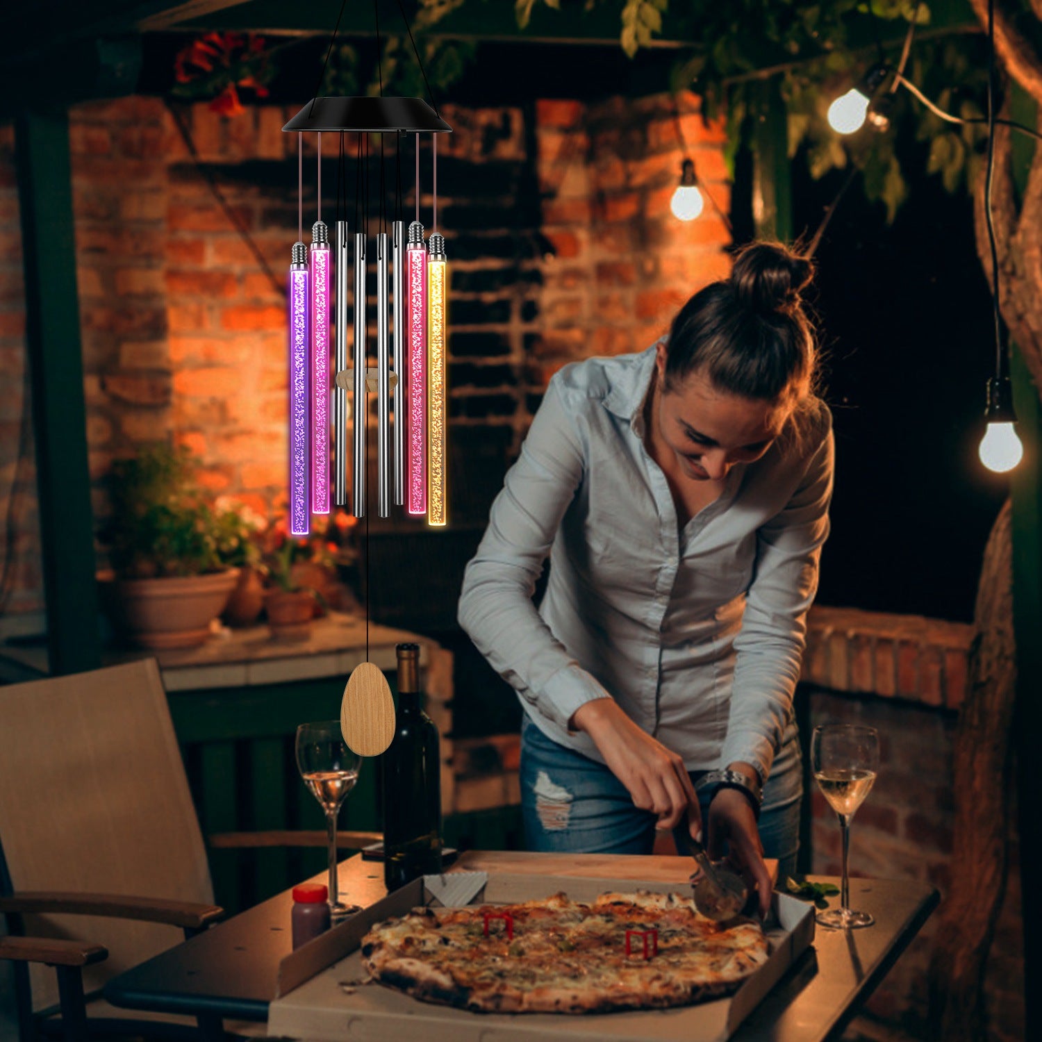 - *Color Changing Decorative Solar Lamp*:The LED Wind Chimes change color among 7 colors. Every acrylic tube of solar wind chime light is glittering and translucent, it can change from one color to the next softly.