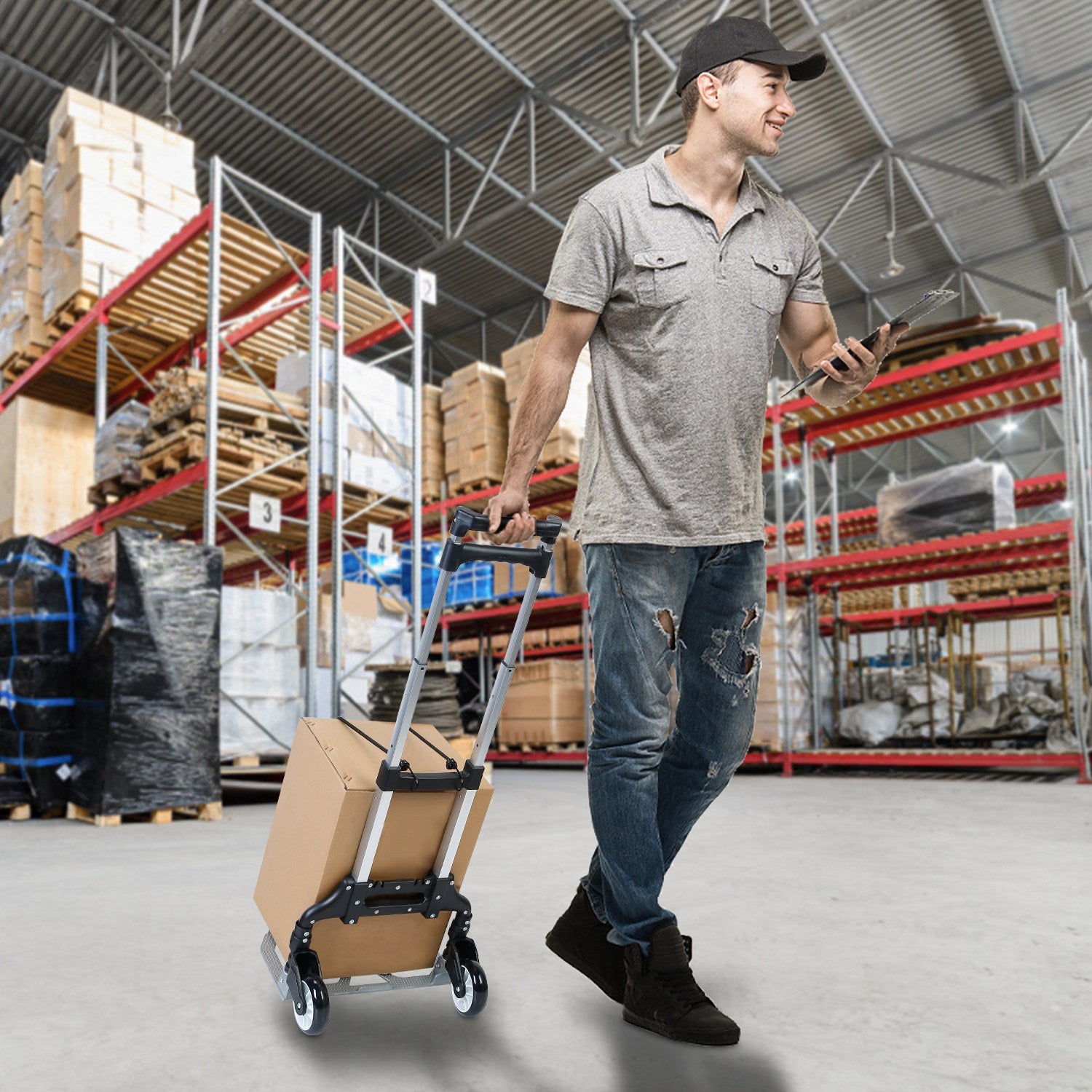 - *Excellent Moving Assistant*:This multifunctional folding hand truck is a very useful tool to transport different items on the go, helps moving heavy objects at home, office, business, traveling, delivering or shopping. Perfect for handling lightweight loads in your daily life. Easy to assemble and no additional tools required.