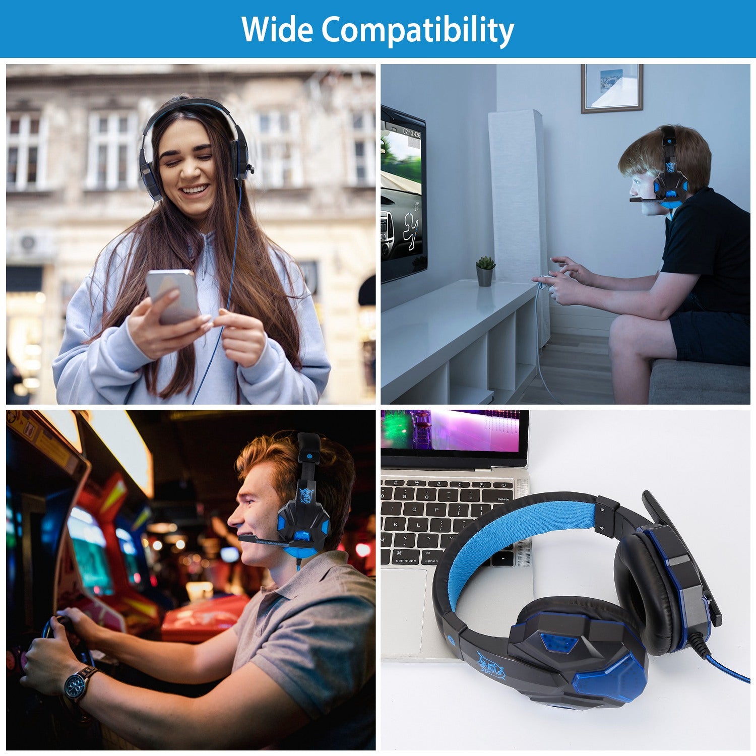 Gaming Headsets Stereo Bass Over Ear Headphones w/LED Light Earmuff w/ Mic 3.5mm Plug USB 6.89FT Cord Fit For PS5/PS4/PS4 Pro/Slim/PSP