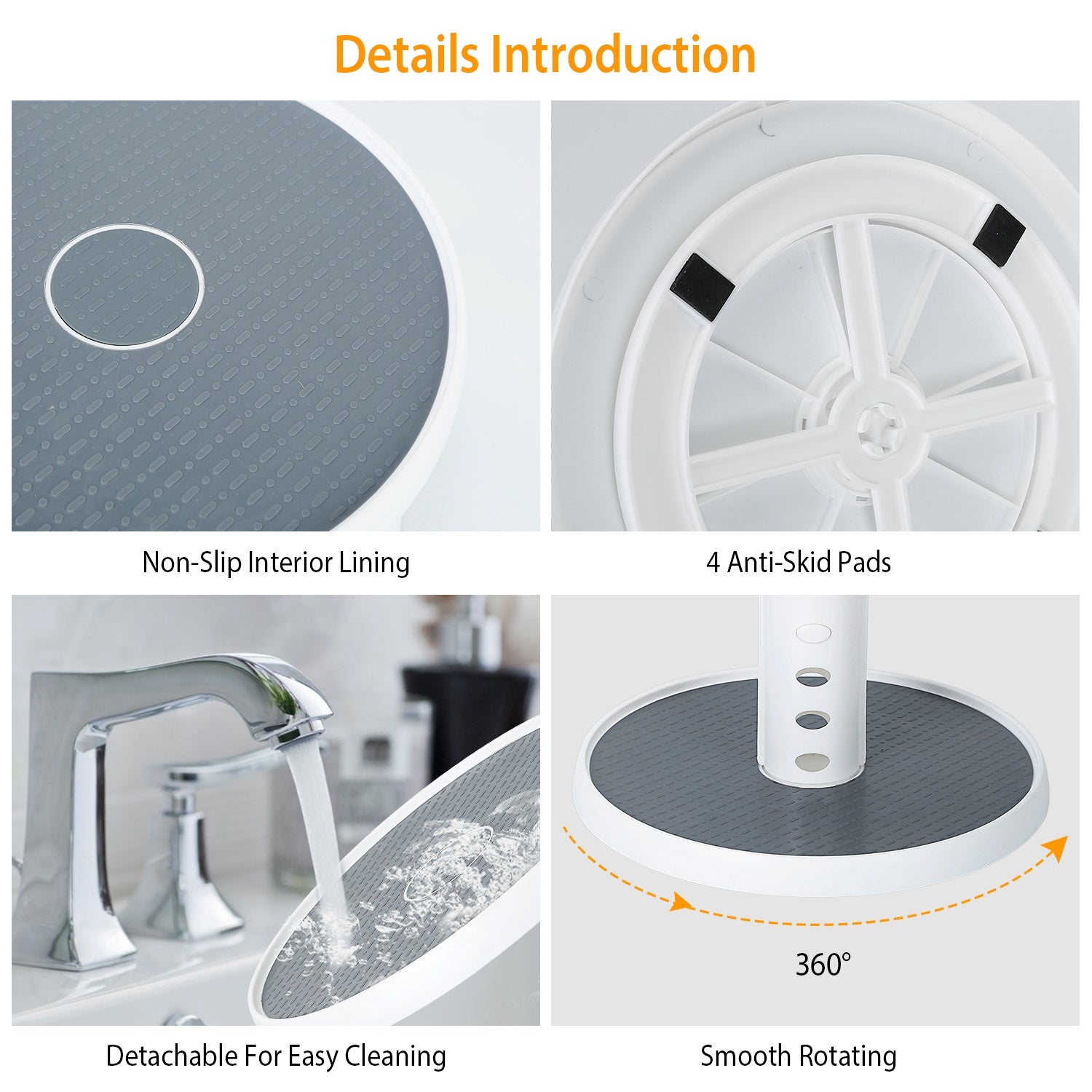 - *Safe Anti-Slip Design*:The bottom of this rack has 4 non-slip silicone pads to provide a stable rotation. Non-slip particles and relatively high edge are added to keep your items from slipping and falling off while spinning. No more worries about any slides!