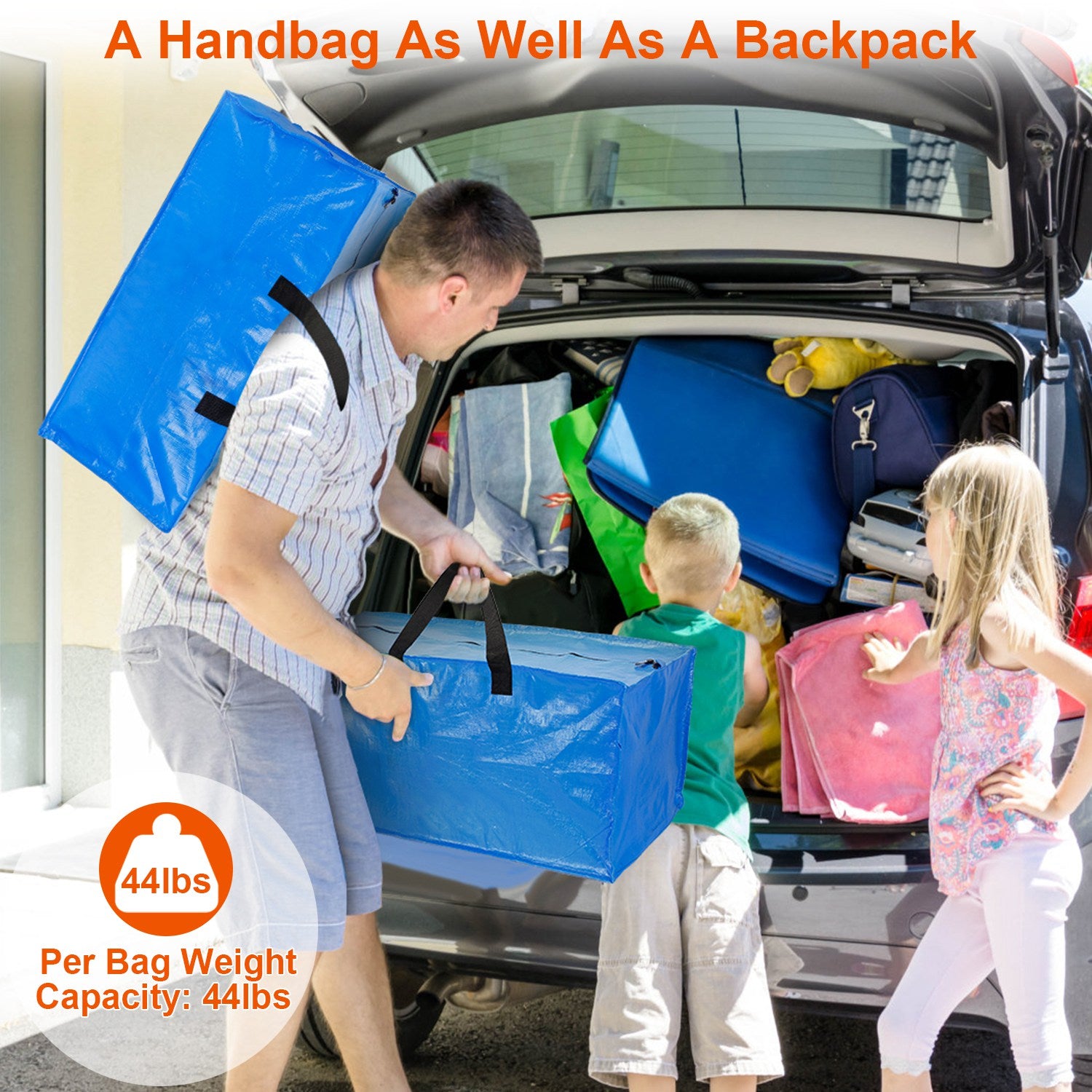 4Pcs Moving Bags Heavy Duty Container Reusable Plastic Totes Blue Moving Bin Zippered Storage Bag