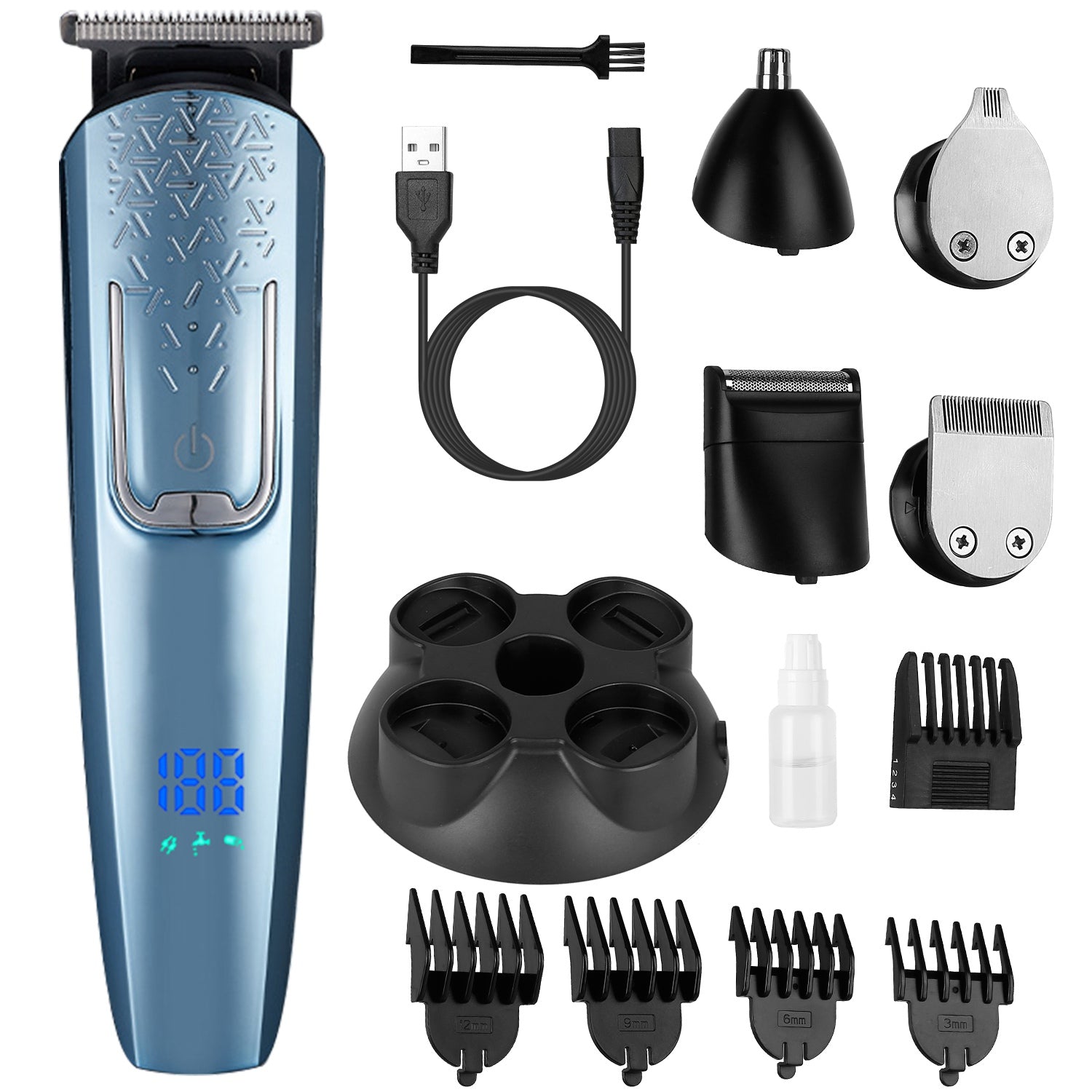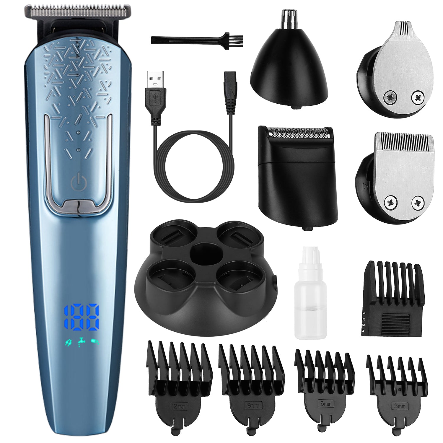 5-In-1 Men’s Beard Trimmer Cordless Hair Clipper Electric Waterproof Shaver Grooming Kit w/ LED Display for Nose Ear Facial Hair