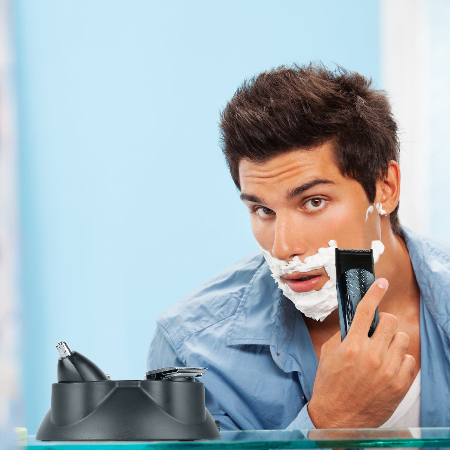 - *5 in 1 Men's Grooming Kit*:Come with Full Size Trimmer, Design Trimmer, Precision Trimmer, Nose Trimmer and Foll Shaver, perfectly creates any hairstyle you need,a perfect gift for your husband, father, grandfather and other male friends!