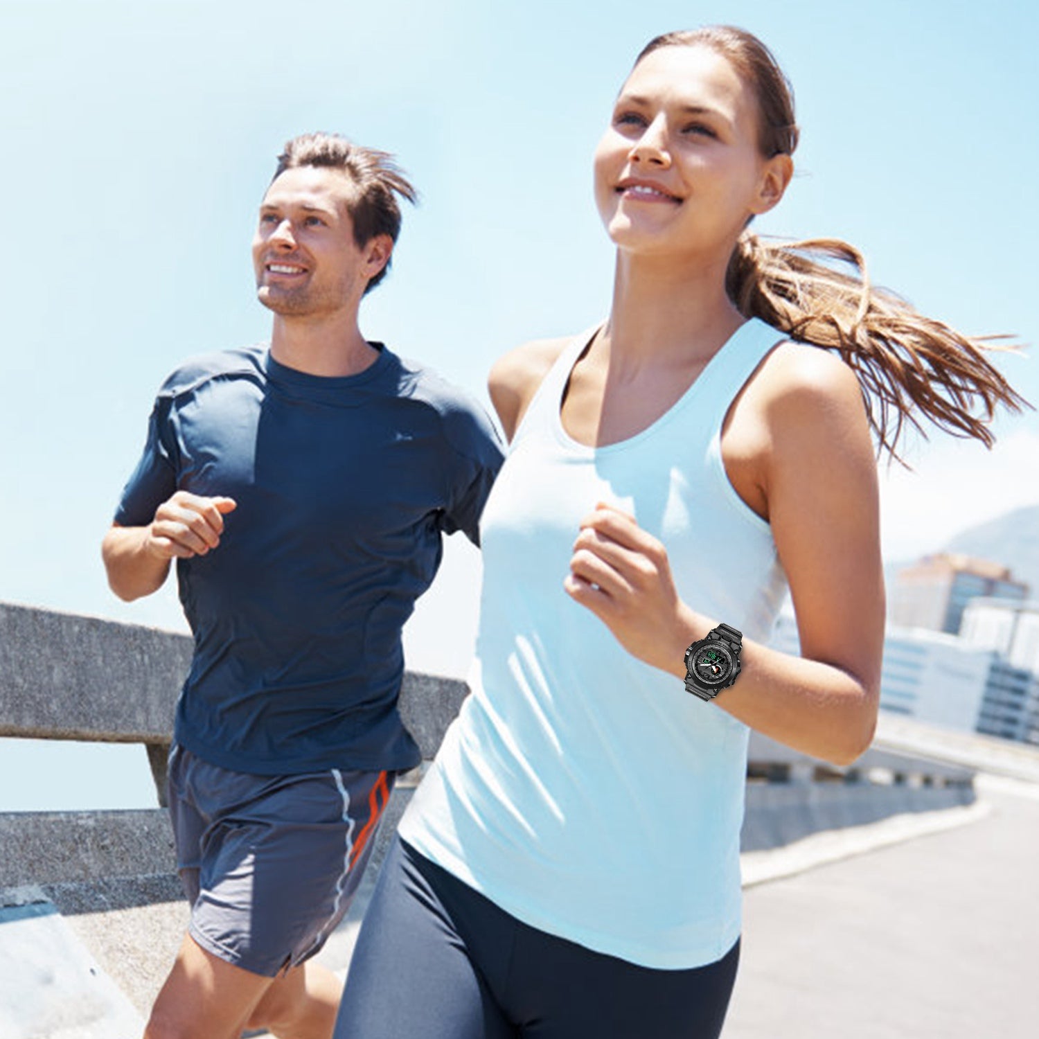 - *Multifunctional Sports Watch*:Featured with stopwatch,dual-time display, independent alarm, 12/24H time display, date display,week display and LED backlight functions, the sport watch is a perfect choice for all kinds of indoor and outdoor sports for everyday use.