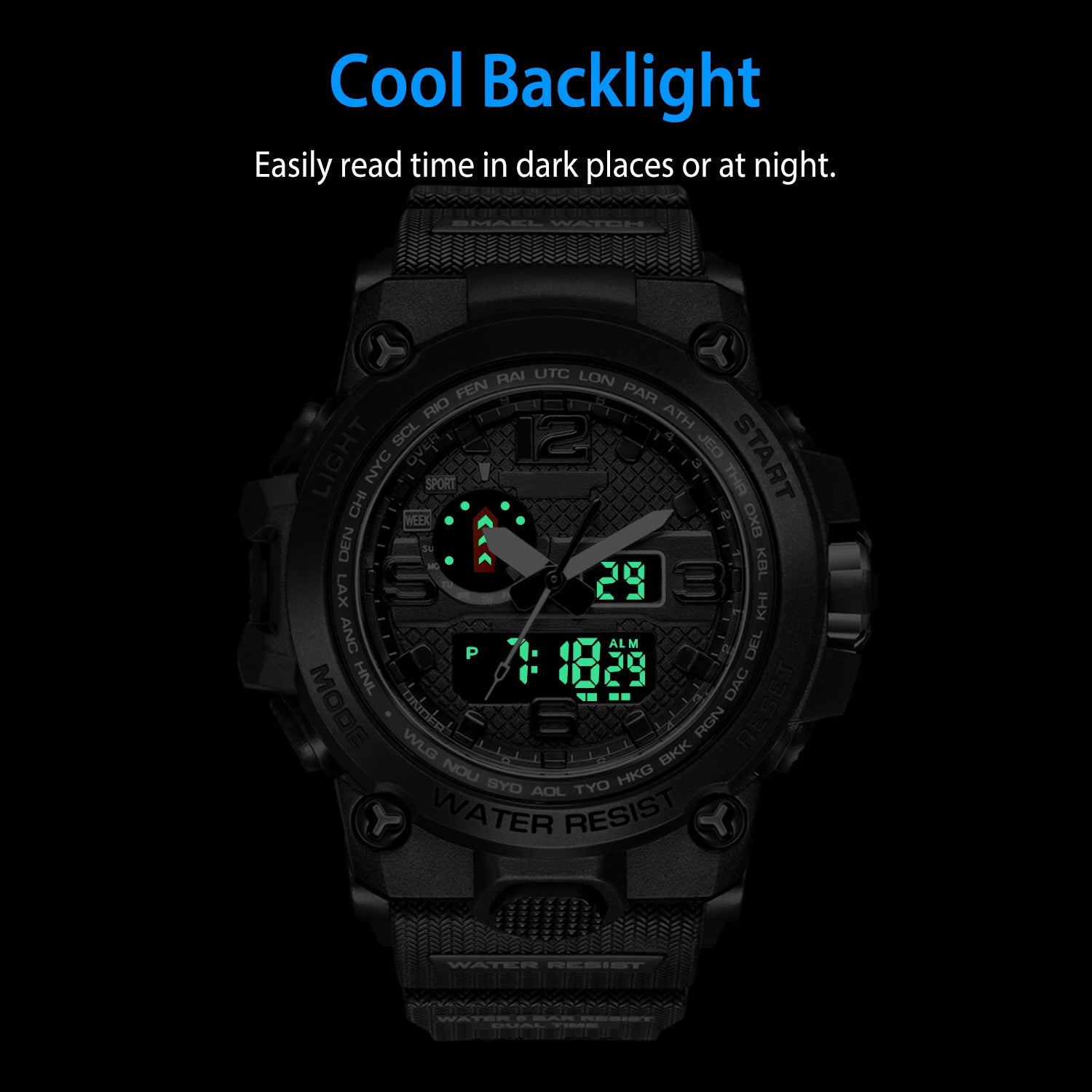 Men's Sports Watch Water-Resistant Military Wrist Watch Digital Analog Watch w/ Quartz Electronic Movement LED Backlight Date Alarm