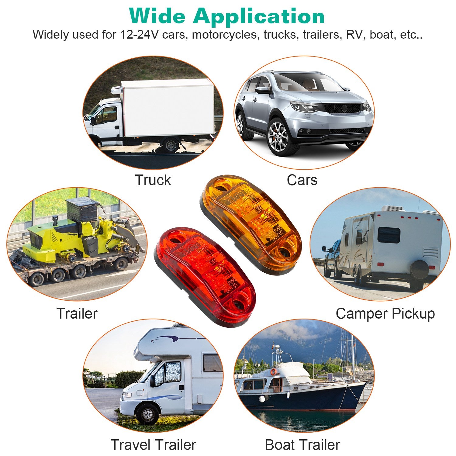 - *Wide Application*:Widely used for 12-24V cars, motorcycles, trucks, trailers, RV, boat, etc. as side marker light,roof lights, turn signal lights, clearance lamp, cab lights, trailer lights, identification lamp roof lights and so on.