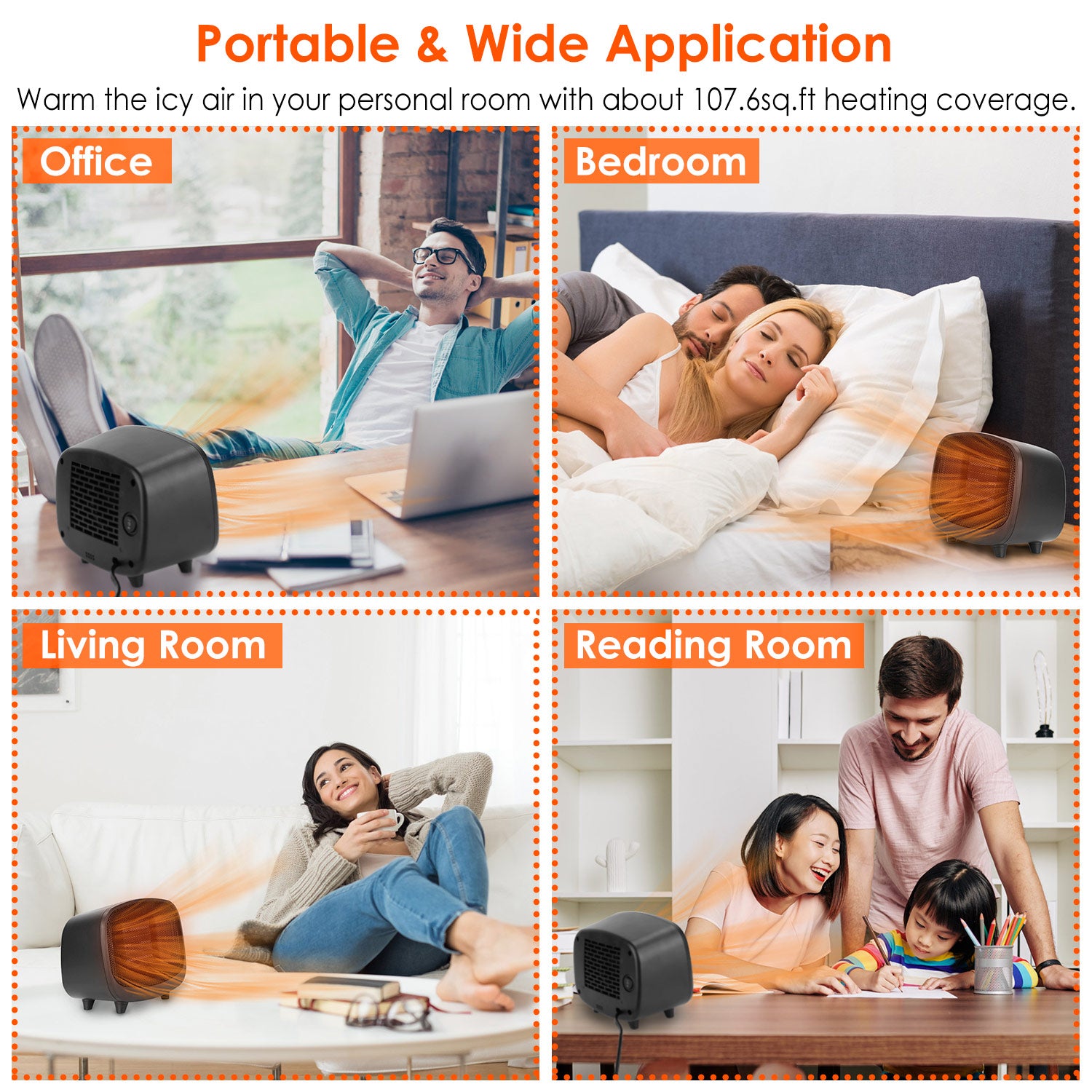 Small Electric Space Heater Portable Mini PTC Ceramic Space Heater Fan w/ Tip-Over and Overheat Protection for Bedroom Office Desk Indoor Us
