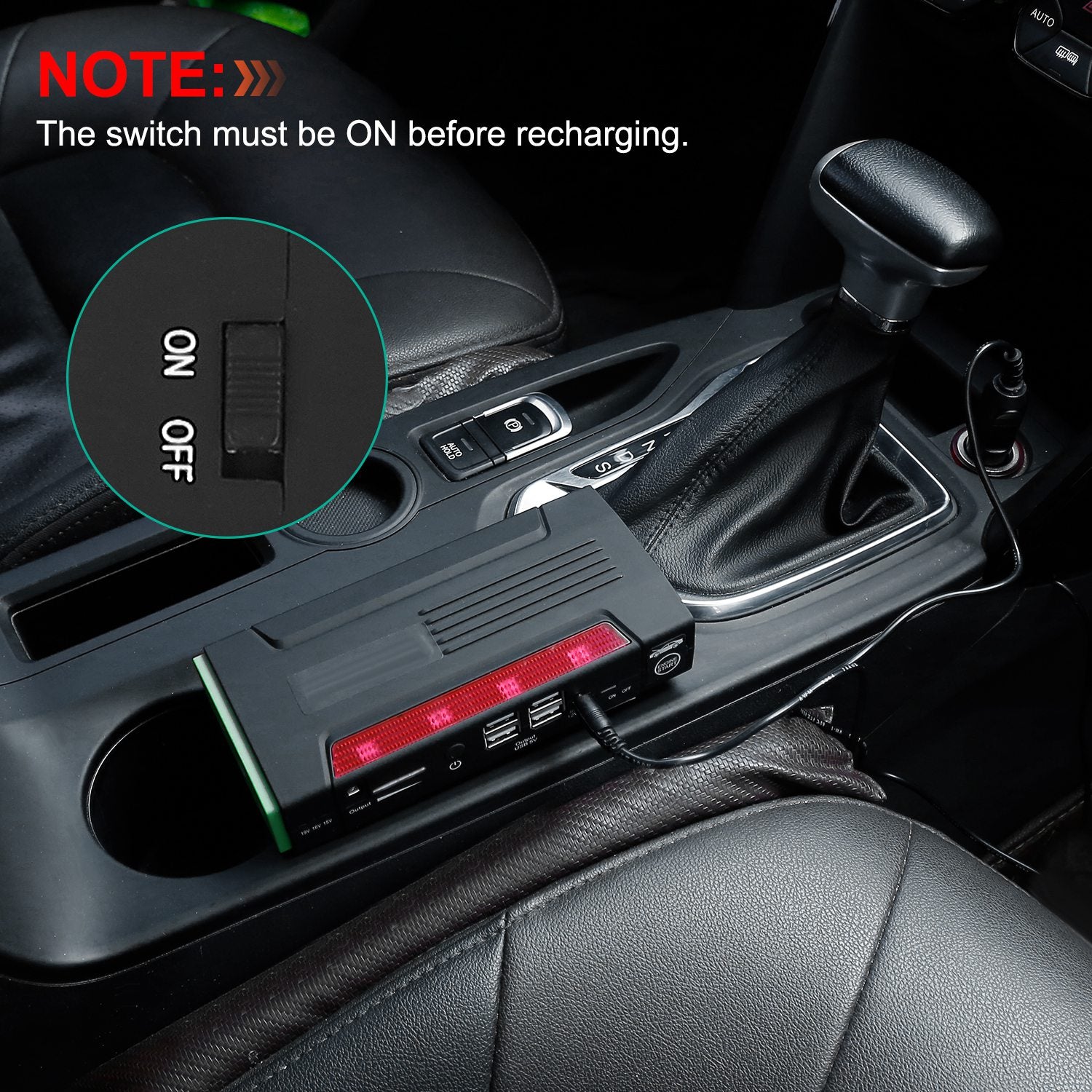- **EMERGENCY LED FLASHLIGHT*:Not only as a car booster but also as an emergency flashlight when you are in an emergency situation. It has 4 modes: normal light, strobe light, SOS light and warning light. Fit your different needs.