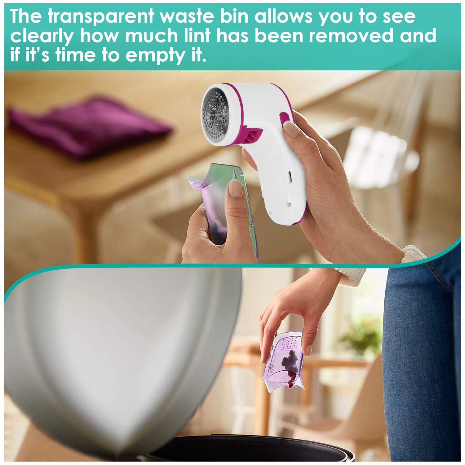 - *Transparent Waste Bin*:The transparent waste bin allows you to see clearly how much lint has been removed and if it’s time to empty it. The attached brush can help you clean the waste bin and the blade easily and completely.