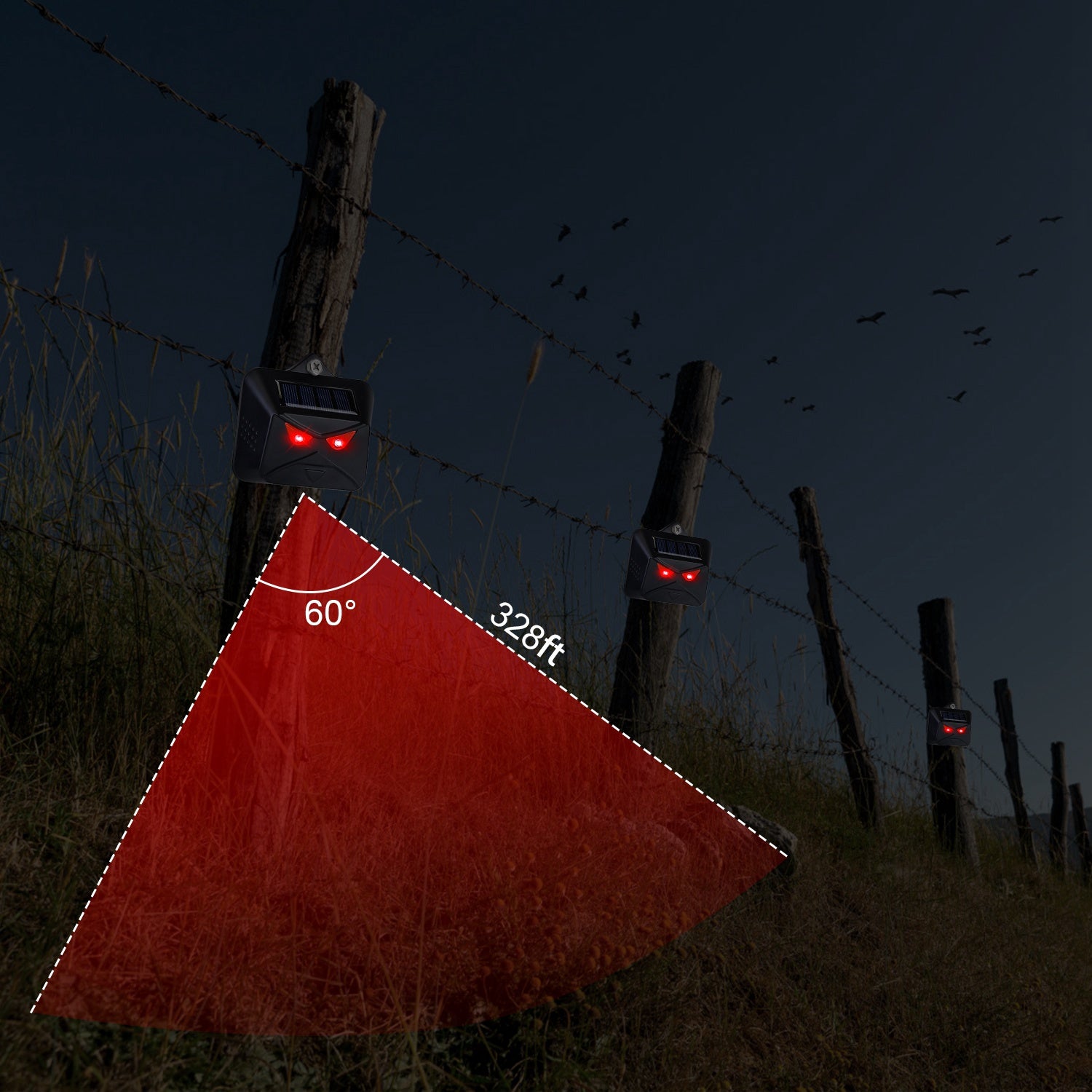 - *Humane & Safe*:It’s designed to drive away all the predators, such as wolf, fox, deer, coyote, raccoon, beer, skunk, birds, and etc.. As it repels the predators by physical light, no animals or people will be hurt.