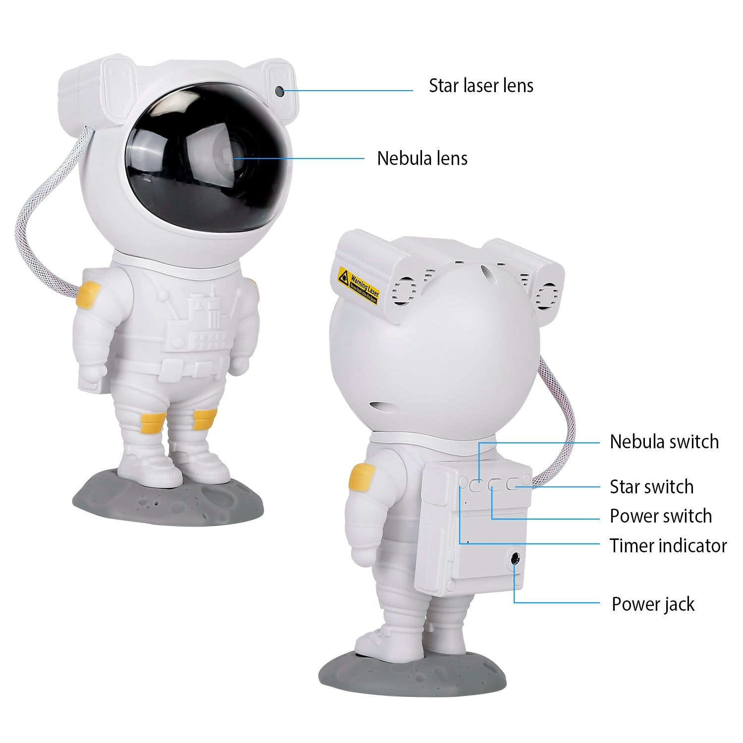 - *Astronaut Nebula Star Projector:This astronaut light features 8 stirring nebula effects accompanied by twinkling green stars. You can project it on the wall or the ceiling, which makes you feel that you are in the vast galaxy. A wonderful ambient light for party, gaming, movies, and etc..
