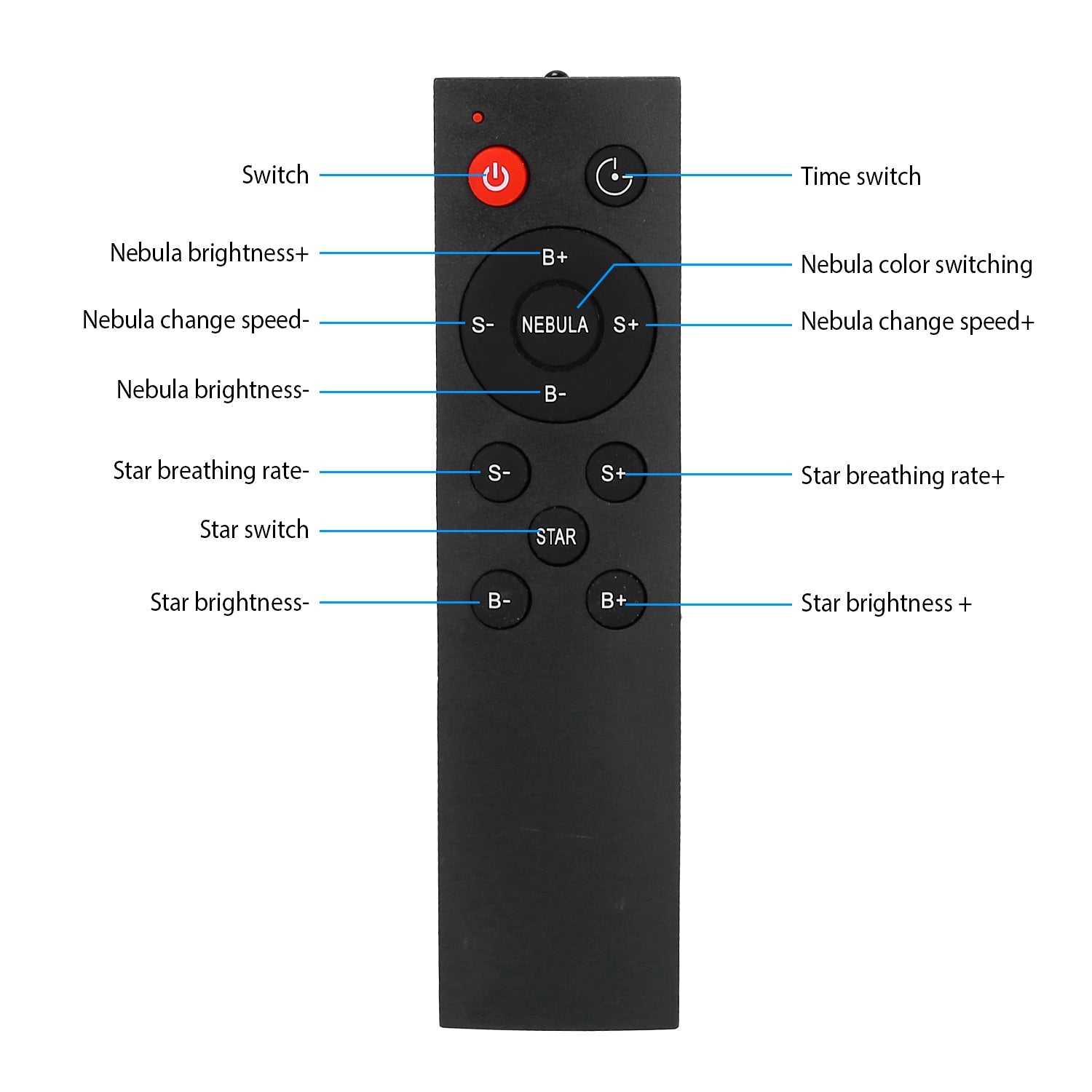 - You can use the remote control to adjust the light color, brightness,and changing speed separately to customize the projection effect you want. Nebula and star mode can be switched separately. Two timing modes are here for your choice, 45mins and 90mins. With this function,you can fall asleep with ease.