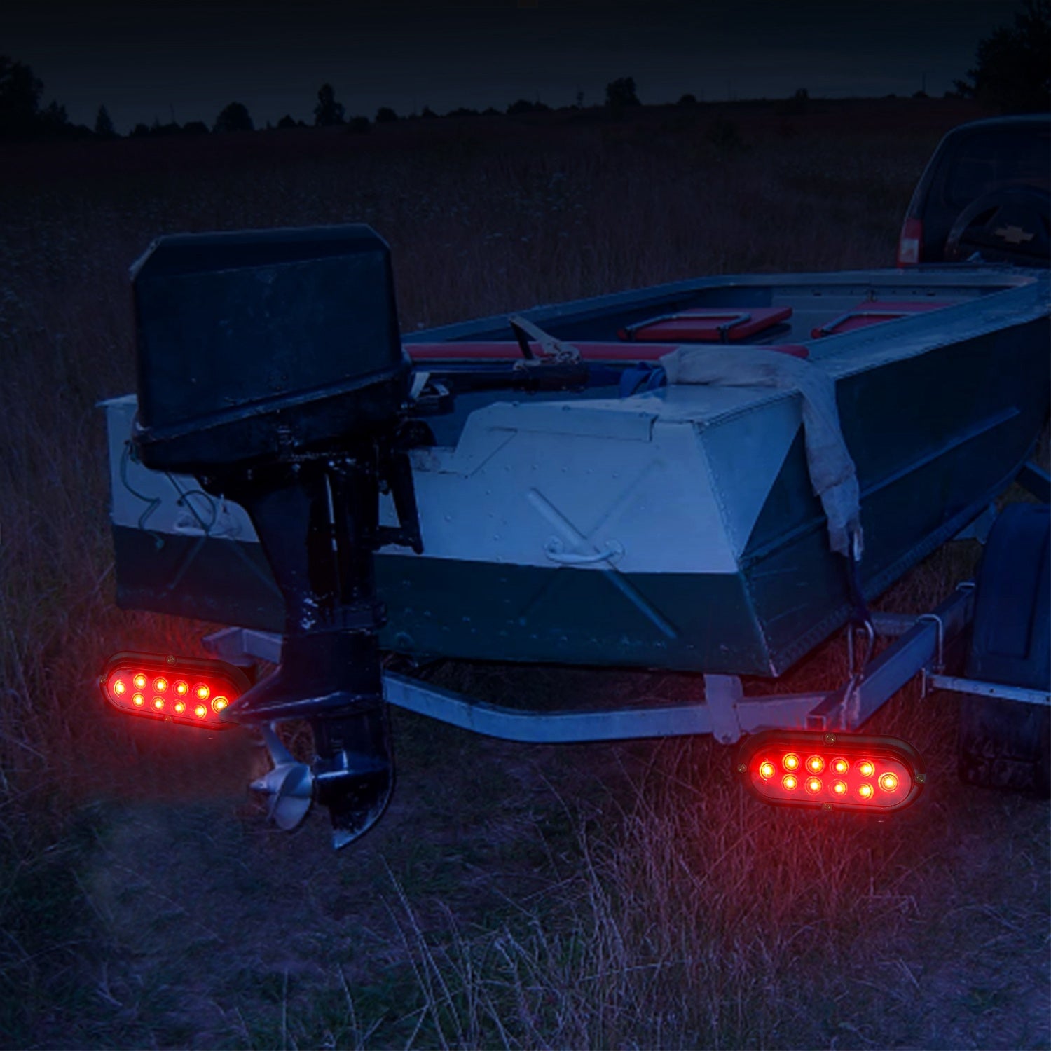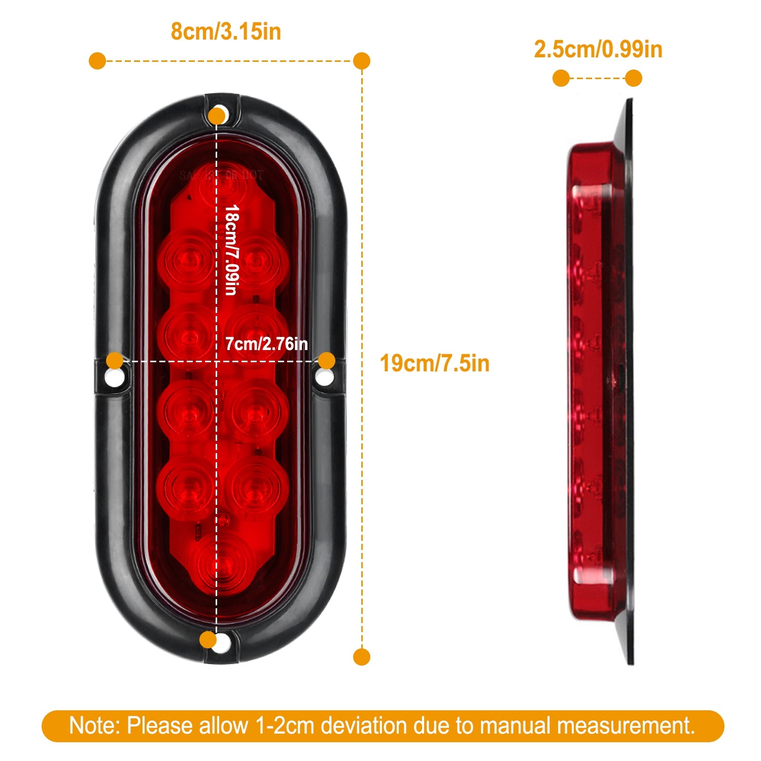 2Pcs Oval LED Brake Light 10LEDs Lamp Stop Turn Tail Light IP65 Waterproof Oval Red Trailer Tail Light for Trunk Jeep RV
