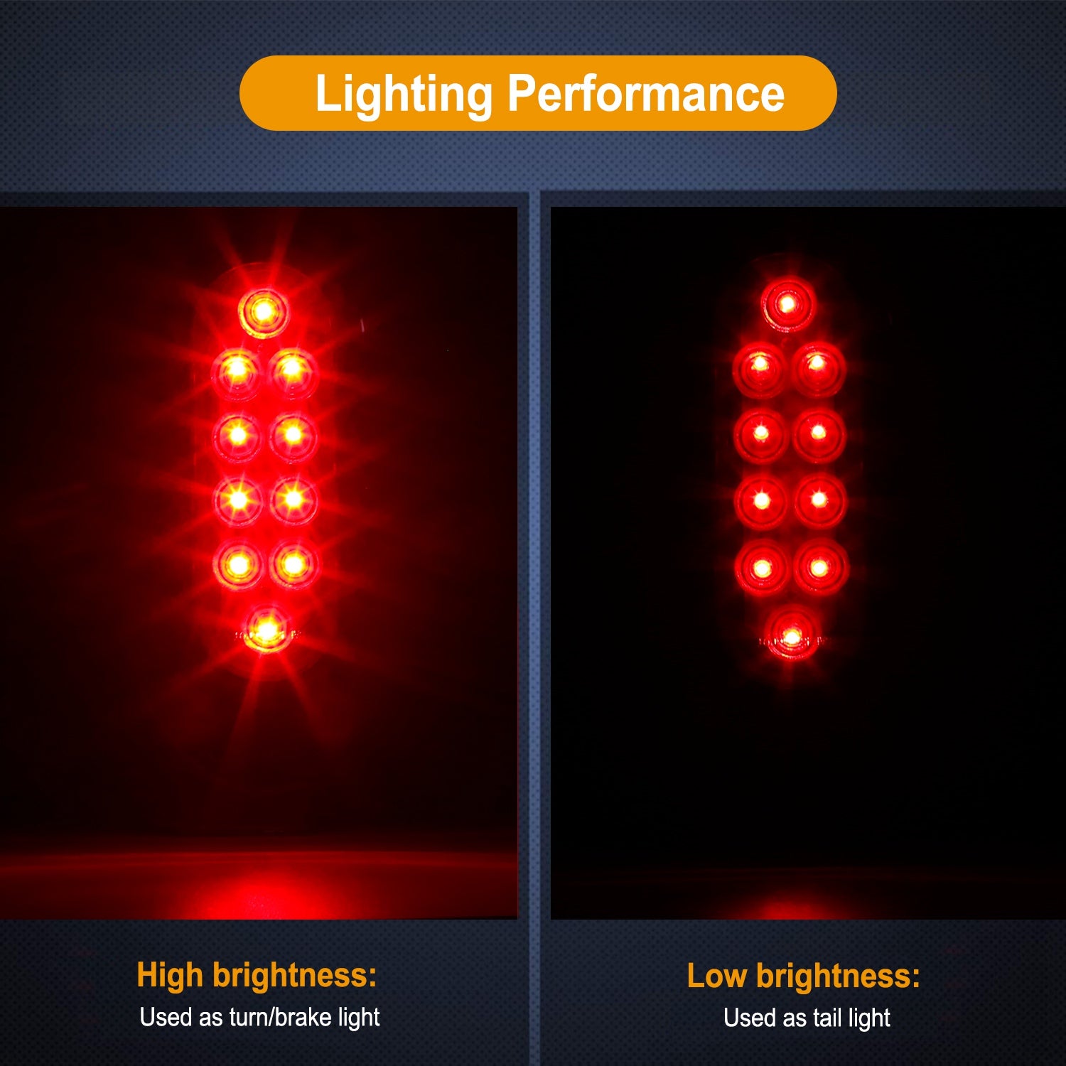 - *Excellent Brightness*:Adopt 10 premium LEDs to support super bright red light, high brightness for turn or brake light,improve the visibility for you and keep safe when you drive.