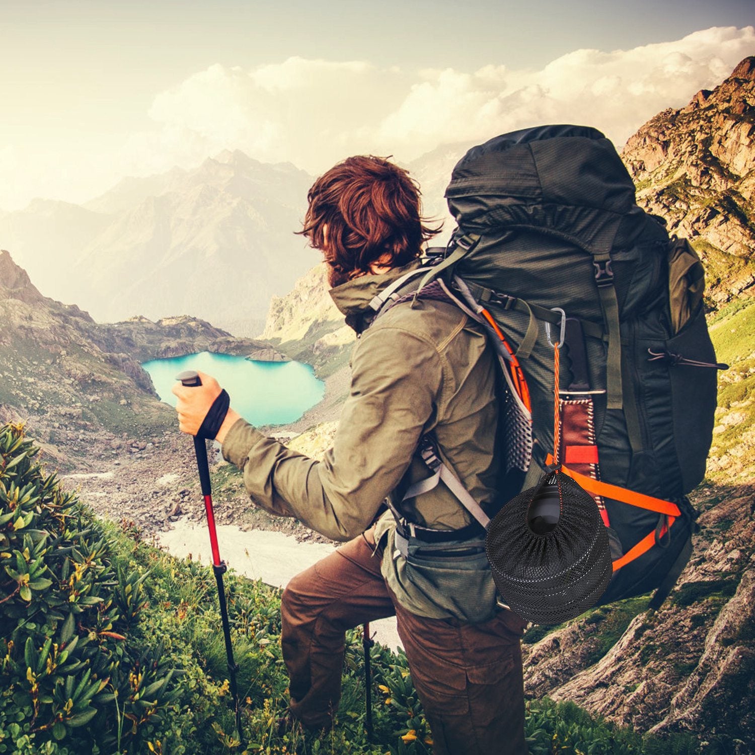 - *Portable Design*:All the cooking wares can be stored in a small mesh bag, space-saving and accessible. You can hang it on the backpack with the attached carabiner. Just take it anywhere you go.
