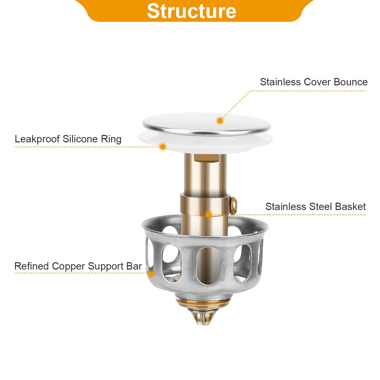*Advanced 2-In-1 Design: Works as bathtub plug and filter, compare with regular push-button drain, this pop up drain stopper for bathroom sink has an anti-clogging basket strainer inside that can prevent hair and valuables from flowing down in the bathtub, and prevent blocking.