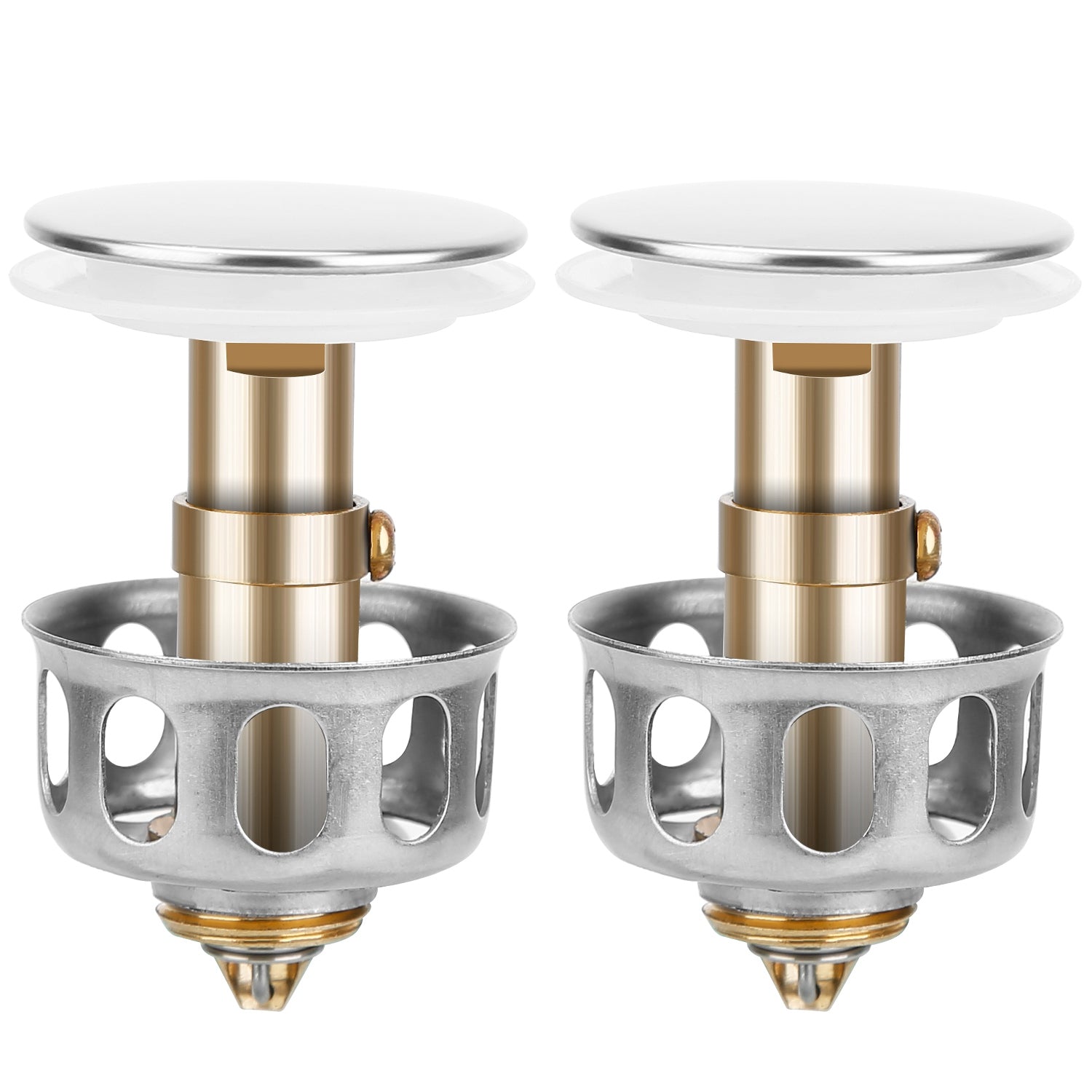 2Pcs Sink Drain Plugs Wash Basin Bounce Drain Filter Pop Up Bathtub Sink Drain Stoppers Strainer W/ Basket